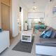 This apartment contains a living room with a dining area, an equipped kitchen, a bedroom, a bathroom, a toilet, and a terrace.